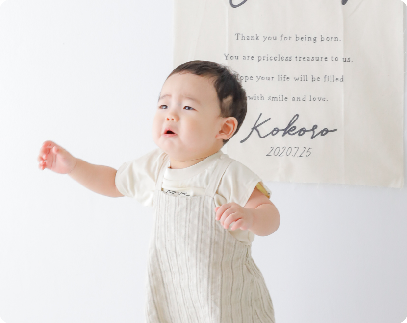 つい最近までお腹にいた我が子が、めまぐるしく変化する、ハーフバースデー・1歳・2歳・3歳…の誕生日に「産まれてきてくれてありがとう!」の気持ちを込めてご家族で“フォトバースデー”としてお祝いしませんか?