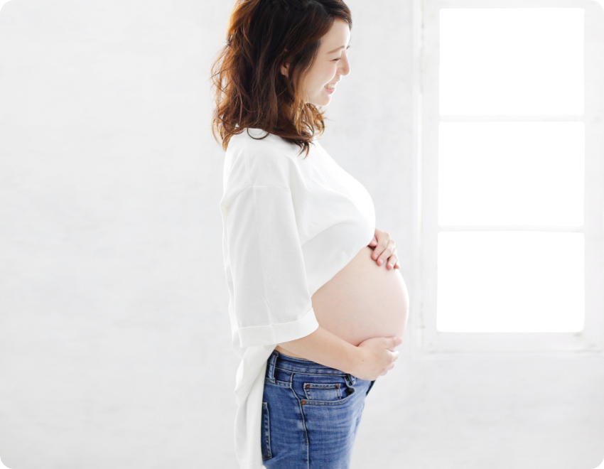 Point 03 妊娠線や肌荒れはキレイに補整 「妊娠線がある」「肌荒れがひどい」「下着のあとがある」など、お腹を出す撮影に抵抗がある方もご安心ください。撮影後にフォトレタッチ(美肌補整)のプロが自然な形でキレイに補整いたします。