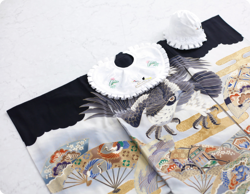 Point 01 お祝い着の無料レンタル ご予約時にお申し込みいただければ、無料で撮影用のお祝い着をお貸しいたします。 また、オプションでお出かけ用お祝い着のレンタル(税込3,300円)もございます。ぜひお気軽にご相談ください。【衣装レンタル/着物・帽子・よだれかけ】