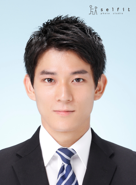 営業という職種をふまえて、しっかりした目元の意志の強さを活かしつつ、口角を上げて親しみやすさのある優しい印象の写真に仕上がりました。