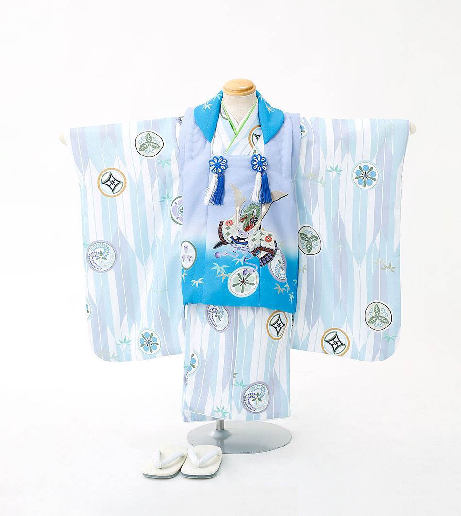 • 七宝に金/片身変わり(グリーン)七五三/三歳・五歳用