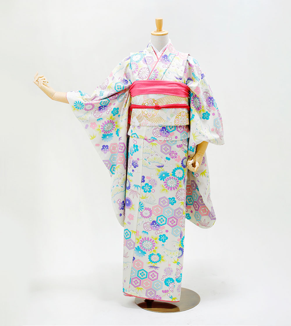 この着物の「花菱亀甲」は、特に格式の高い「長寿」を願いがこもった吉祥紋です。