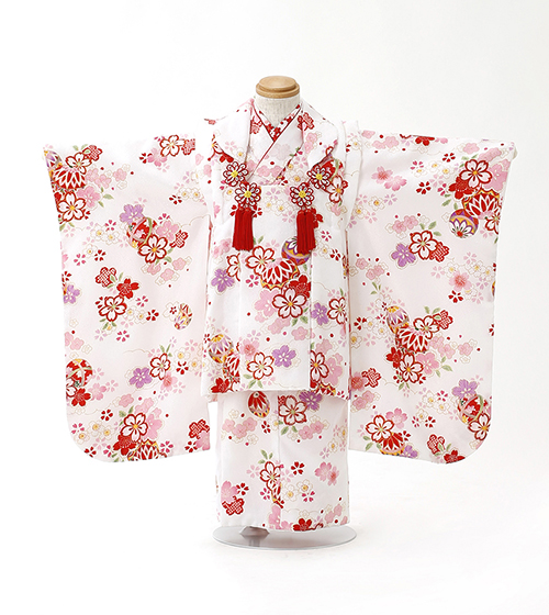 邪気を払うとされる「くす玉」と吉祥の「雲気」を配した、とても縁起の良い着物。