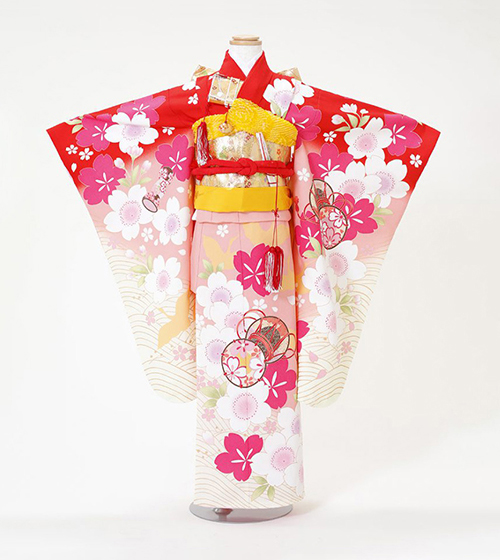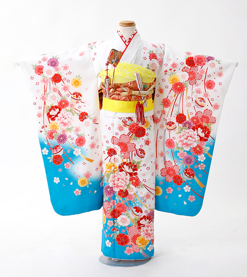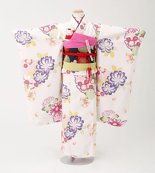 邪気を払うとされる「くす玉」と吉祥の「雲気」を配した、とても縁起の良い着物。