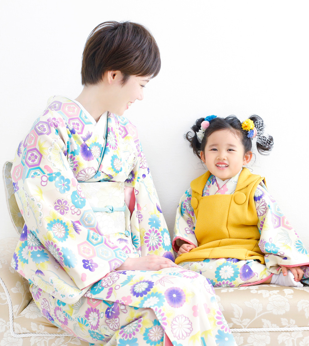 伝統的な和柄をモダンな配色にすることで、特に7歳のお嬢様に選ばれる人気の着物です!