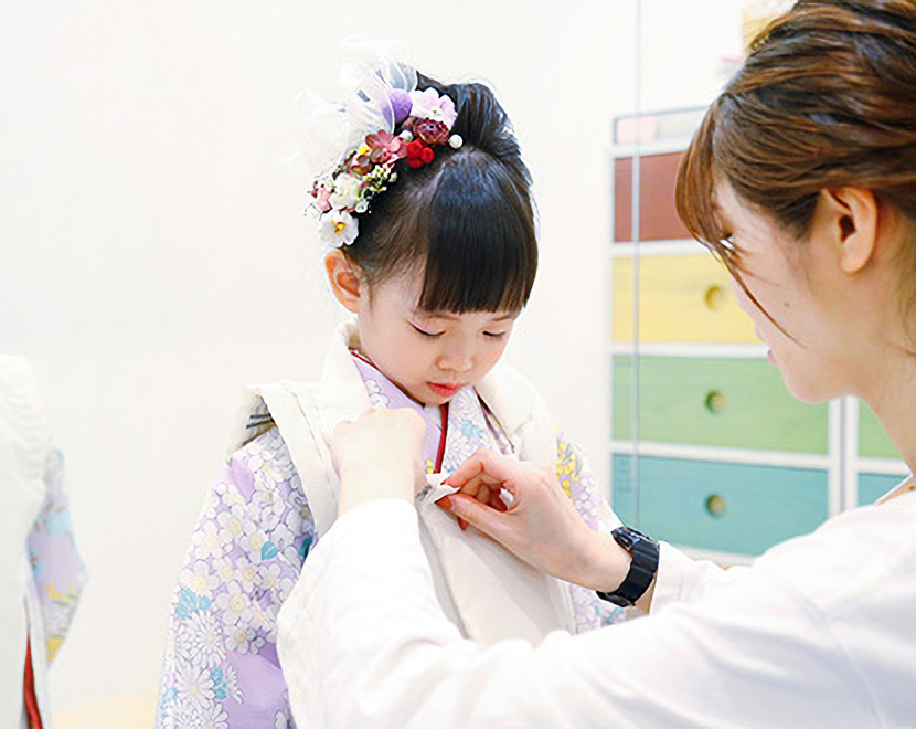 Point 02 経験豊富な撮影・ヘアメイクスタッフが対応 子どもの撮影経験が豊富なカメラマンが、お子様の自然な表情・仕草を逃すことなくとらえ、家族の思い出の瞬間を魅力的に写します。さらに現場で十分に経験を積んだヘアメイク・着付けのスタッフが安定したクオリティで晴れの日を特別な一日に仕上げます。ご家族全員の素敵な思い出になるようにスタッフ一同でバックアップします。