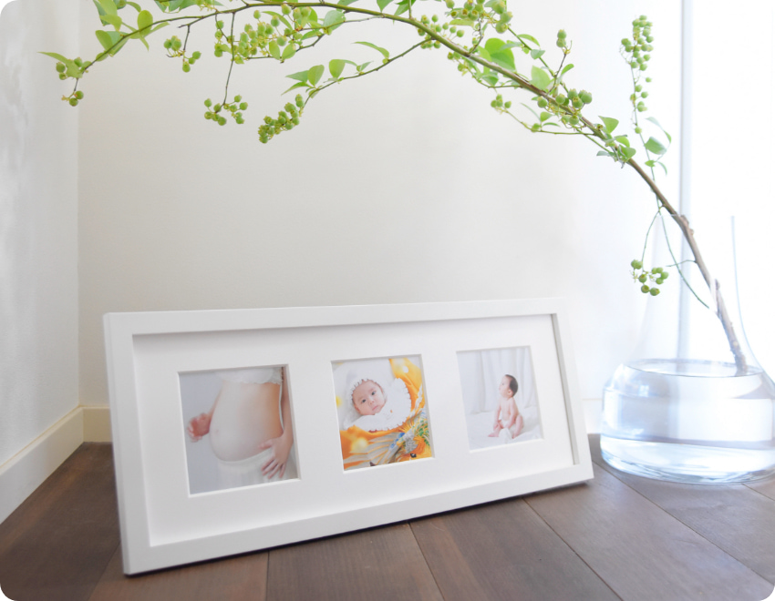 Point 05 飾りたくなる記念写真を提供 セルフィットは白を基調とした明るくてナチュラルなスタジオならではの、おしゃれな仕上がりが人気です。お部屋のインテリアにも魅力的なフォトフレームを多数ご用意しています。お気に入りのフレームに入れて飾ることで、幸福な思い出をいつも感じられます。