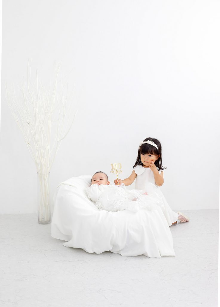 Point 04 人数・カット数制限なし 時間内であれば、人数やカット数の制限はありません。たとえば、お祝い着とベビードレスのお写真、赤ちゃんとごきょうだい、赤ちゃんとご家族全員のお写真など、様々な組み合わせで撮影をお楽しみください。またご一緒に撮影される方と事前に服装や小物についてご相談されると、より印象的な撮影体験になります。