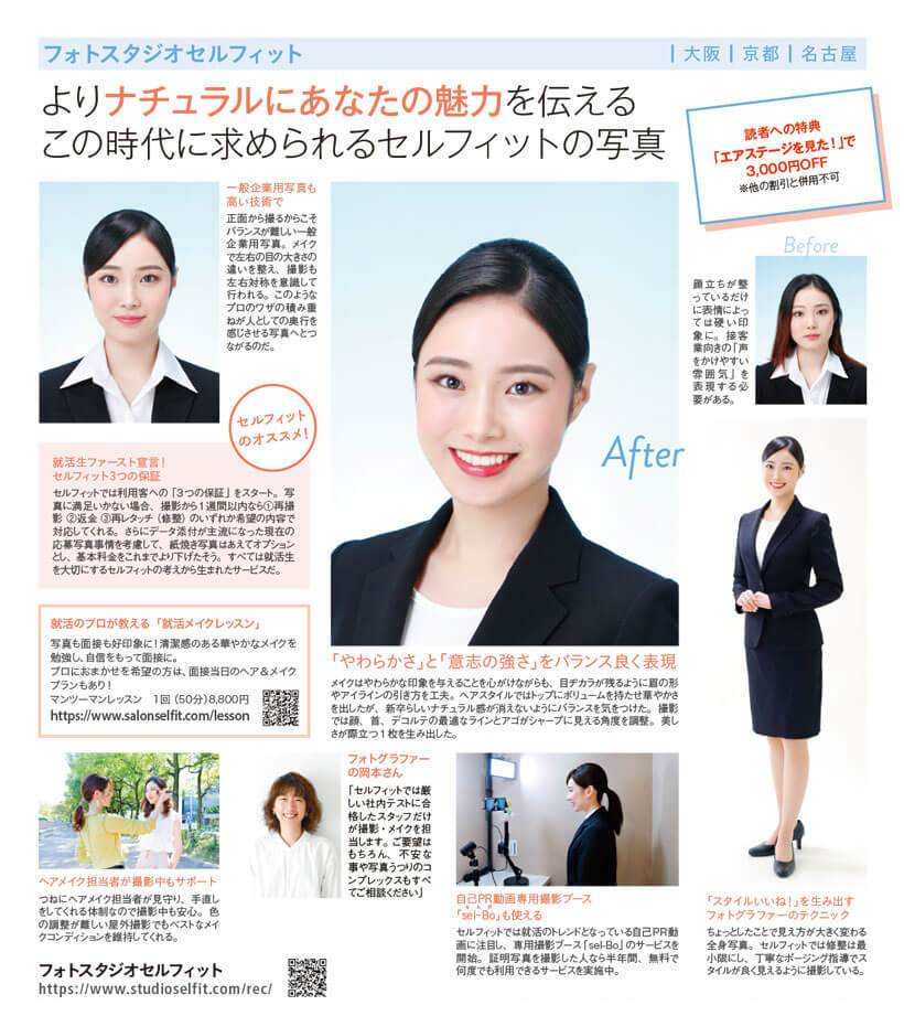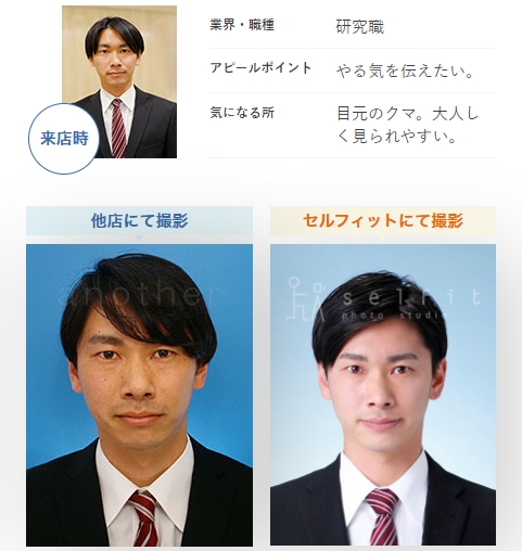 Reason 02 元就活支援会社の写真スタジオ 当時は就活生の個々の魅力を写真に反映できる写真スタジオは多くなく、支援会社だったノウハウを活かした撮影で話題に。就活生の皆さんの想いにお応えしていった結果、関西No.1の実績を築くまでに!履歴書・エントリーシートの写真ならセルフィットで!