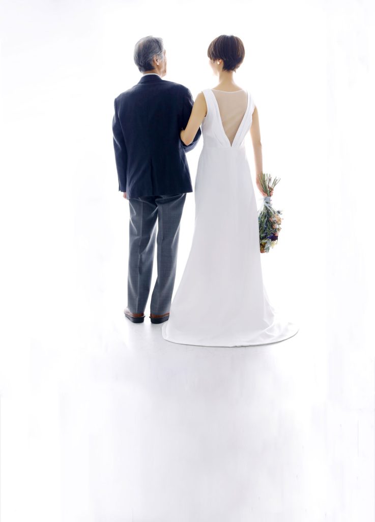 洗練されたシンプルさと写真映えを兼ね備えたドレスとスーツをご用意しました。 新婦用のベースのドレスは、ブラウスやスカートをレイヤードすることで、雰囲気が一新し様々な着こなしが可能です。